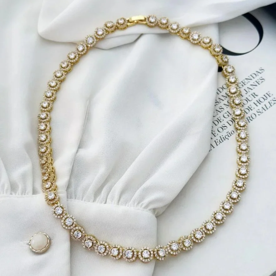 40% OFF BLACK FRIDAY Choker Folheada a Ouro 18K Laminado Pingente Strass Infinito
