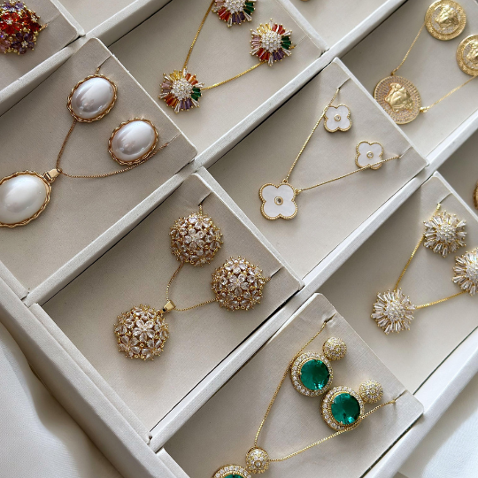 Colar Folheado a Ouro 18K Medalinhas e Mão de Fátima Off-White