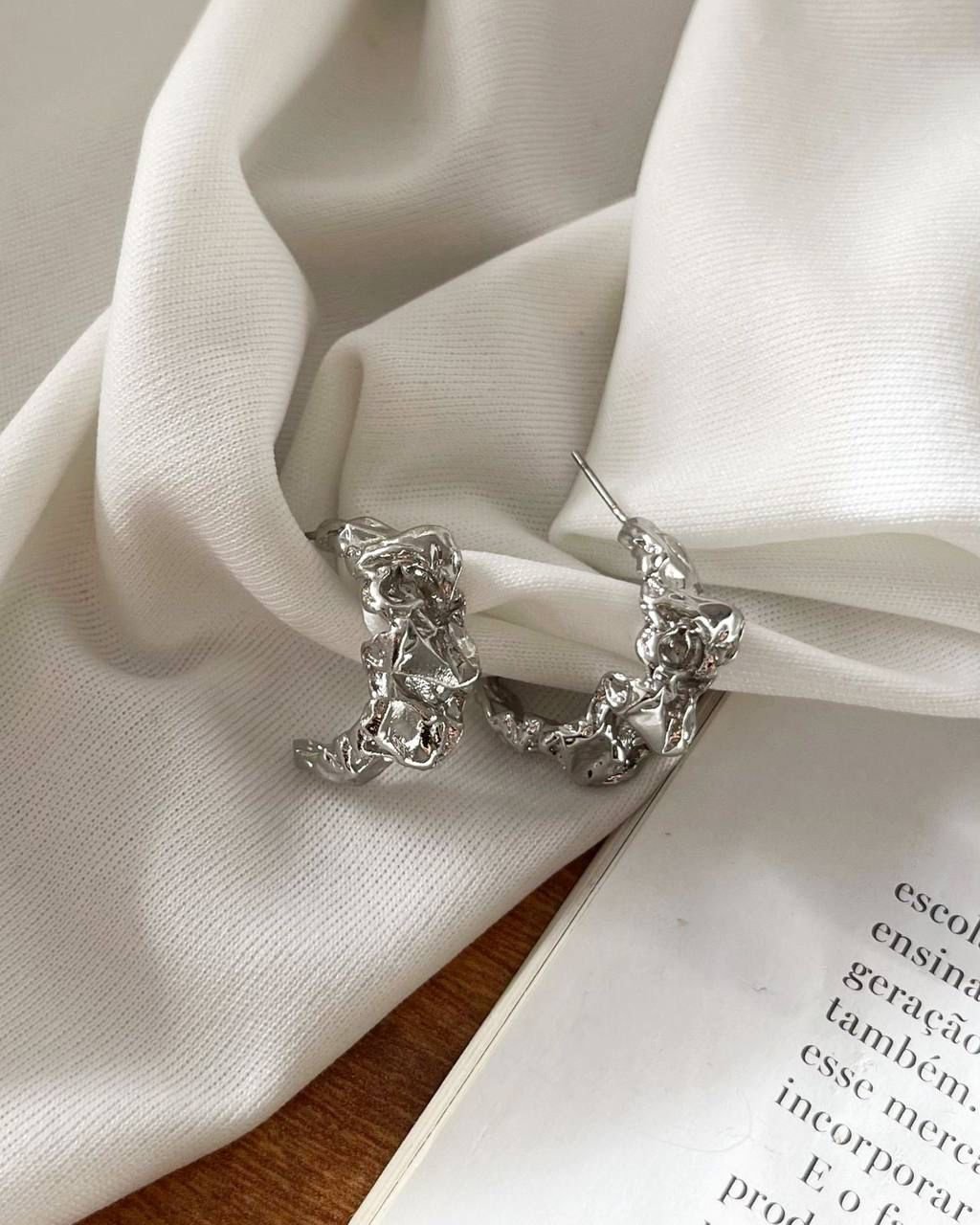 Argola Prata Dobradura Rústica