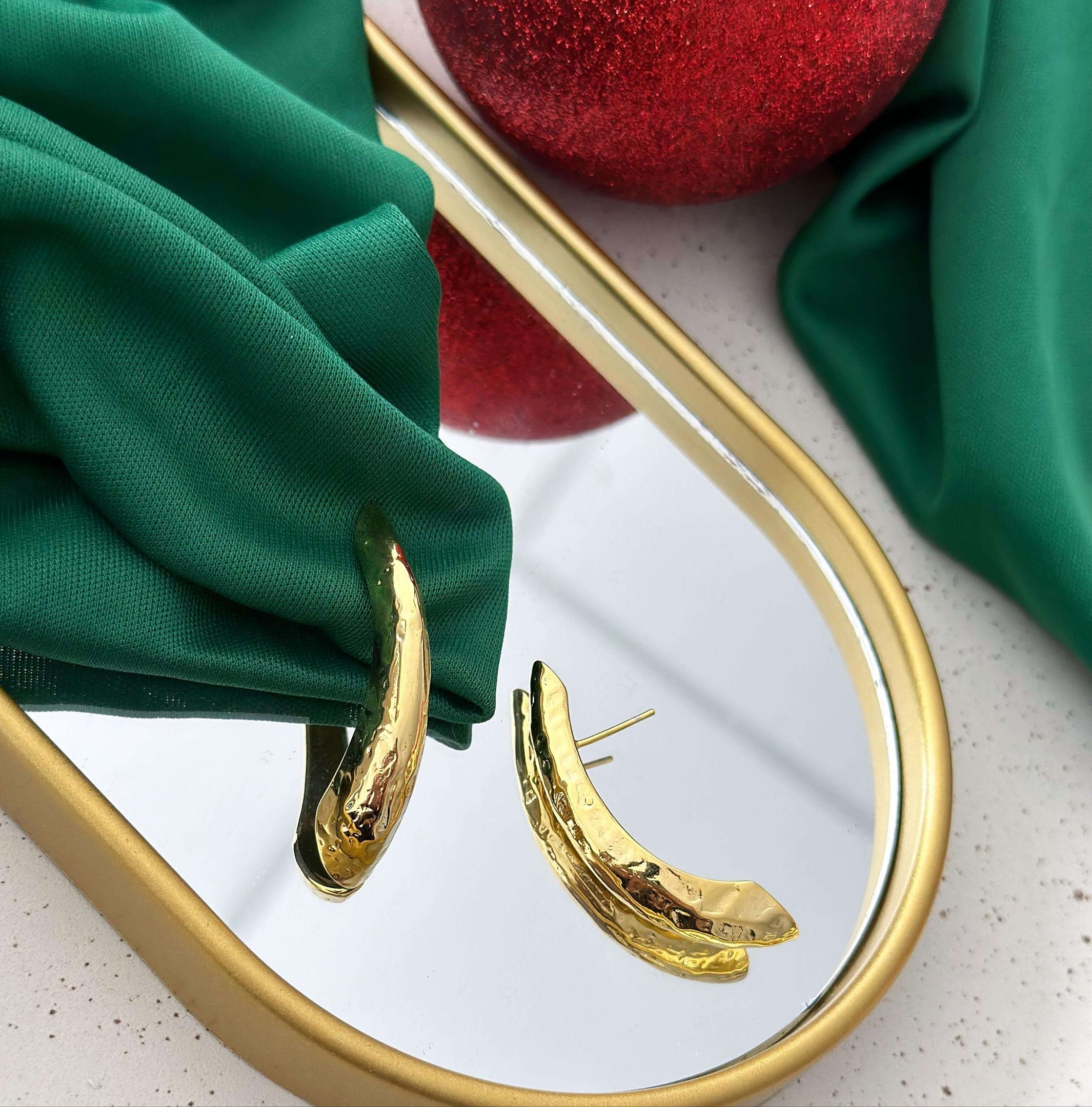 Brinco folheado a 18K com 2 a 3 milésimos de ouro, acabamento em dupla camada de verniz. Elegância e durabilidade em cada detalhe.