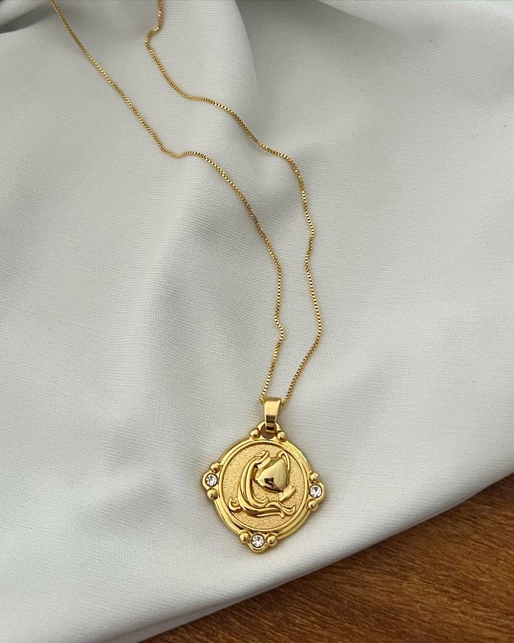 Colar Folheado a Ouro18K Pingente Semijoia Signo Aquario